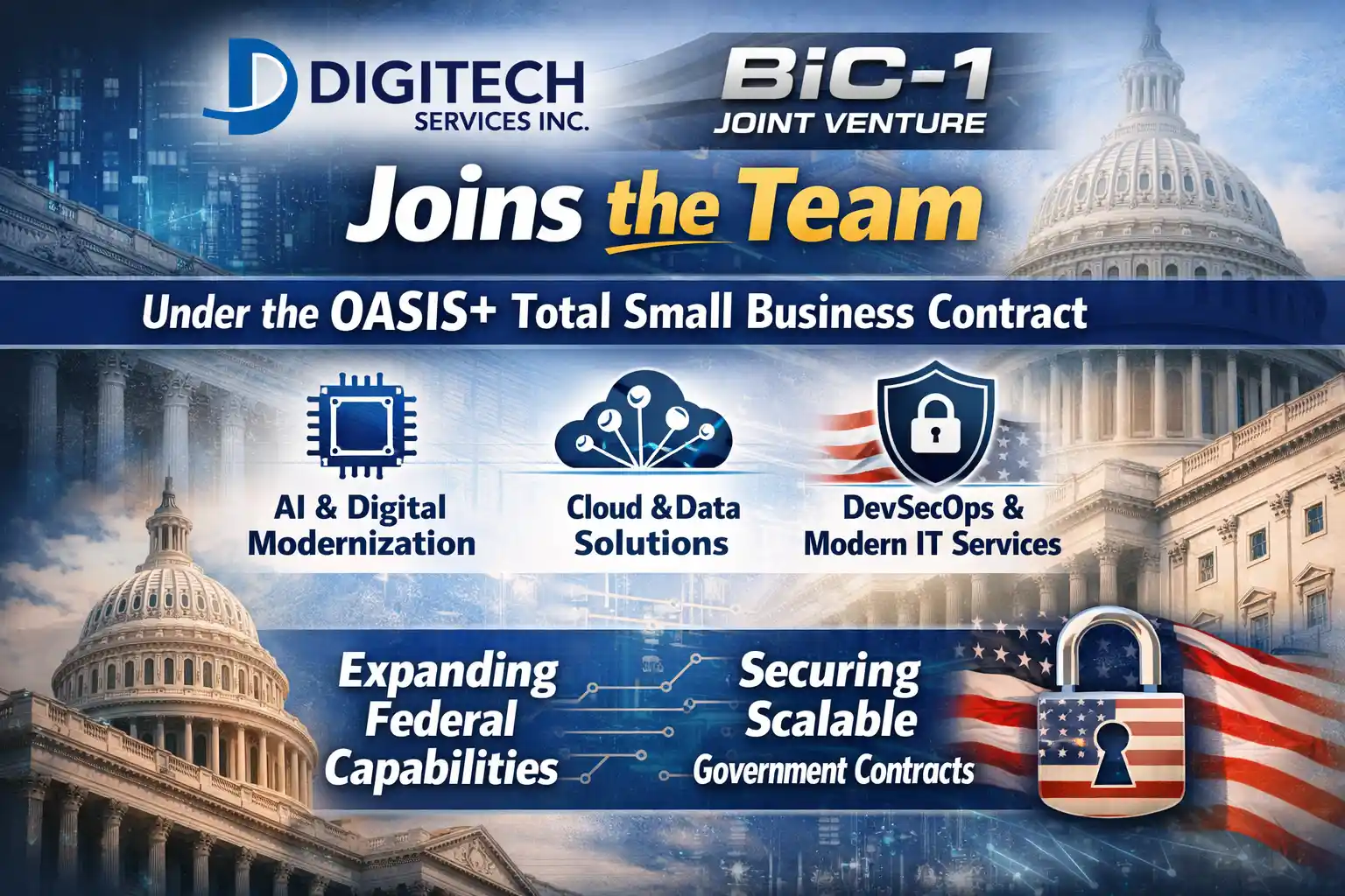 Digitech Services Inc. has joined the BiC-1 Joint Venture team under the OASIS+ Total Small Business contract, strengthening its role in delivering advanced AI and digital modernization support for government agencies.
